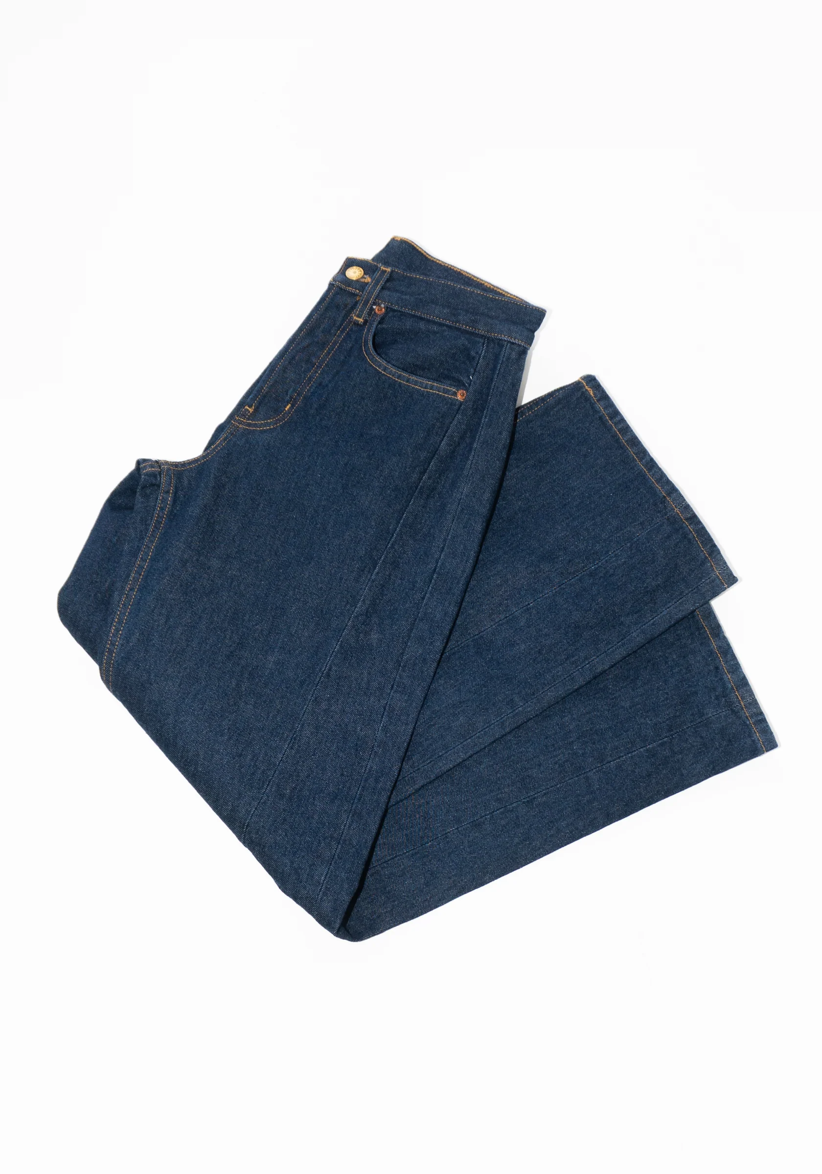Slim Lasso in Indigo Rinse from B Sides. High rise jean with curved, tapered pant legs. Features relaxed fit through the waist and hips, classic 5-pocket construction and belt loops.