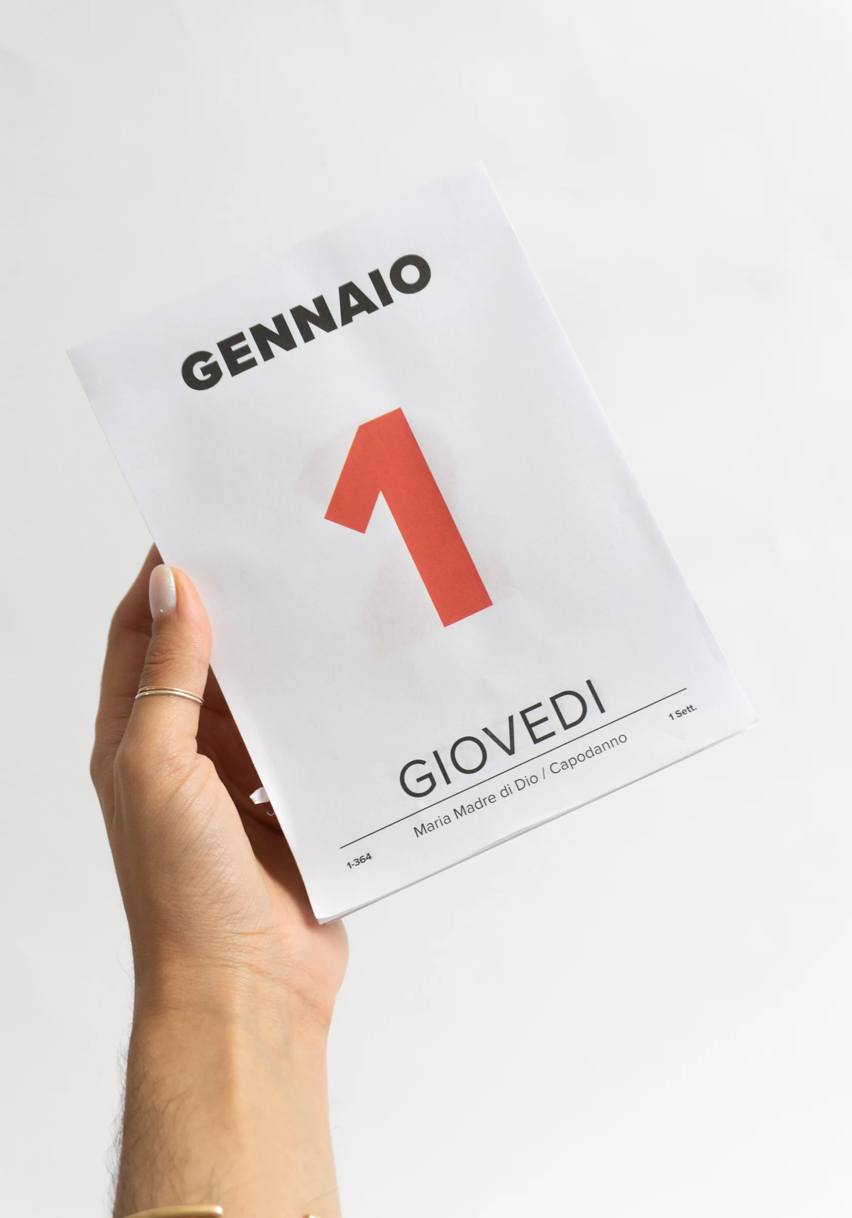 Italian Desk Calendar 2026 from Studio Carta. Paper calendar 2025 designed for your desk, to tear the page and display the current date, day of the week and the saint of the day, all in Italian.