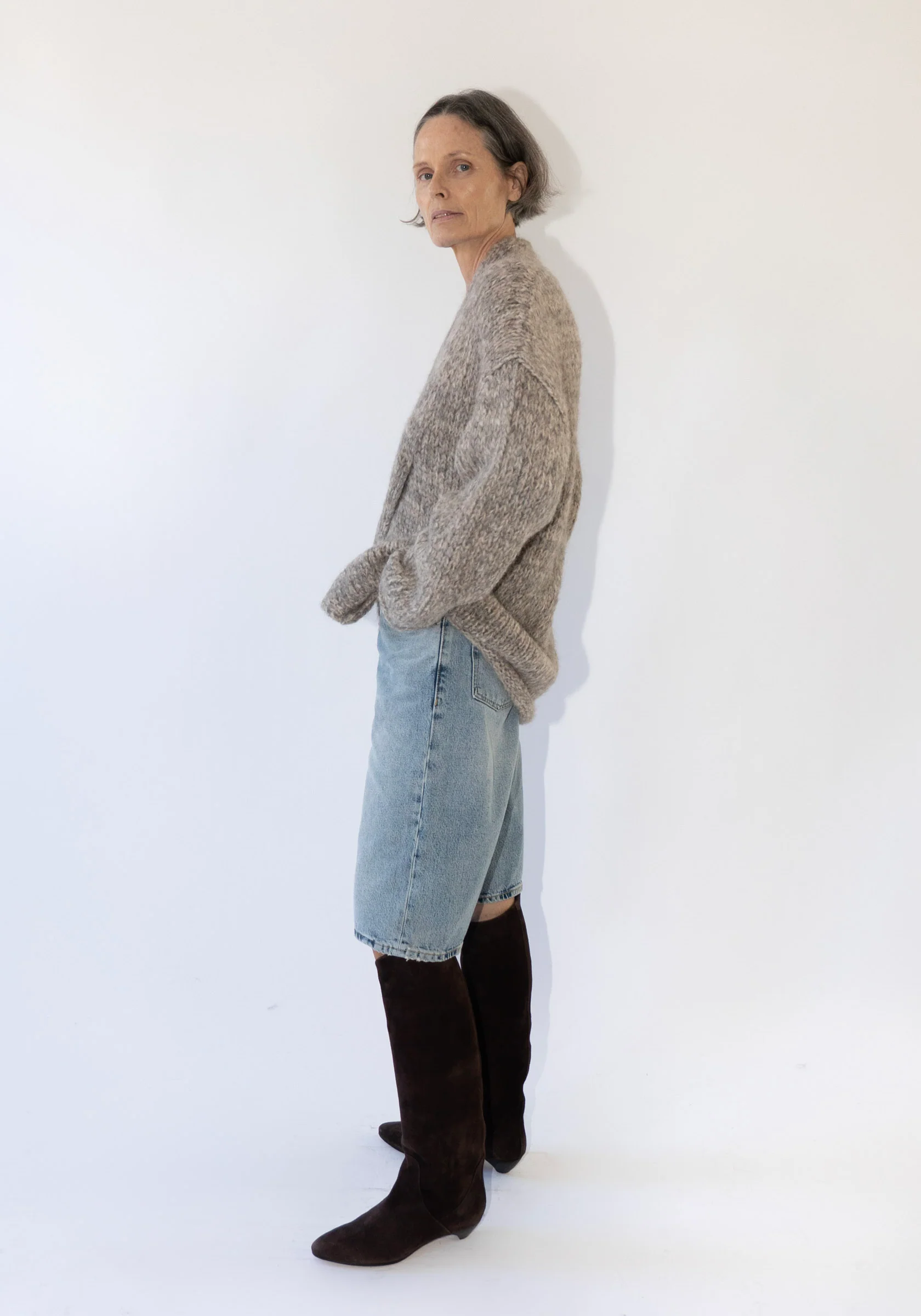 Handknit Big Cable Pullover in Marl from Lauren Manoogian. A chunky, handknit sweater featuring oversized cable stitches for a bold texture and a cross-over front. Features an oversized and comfortable fit. One Size