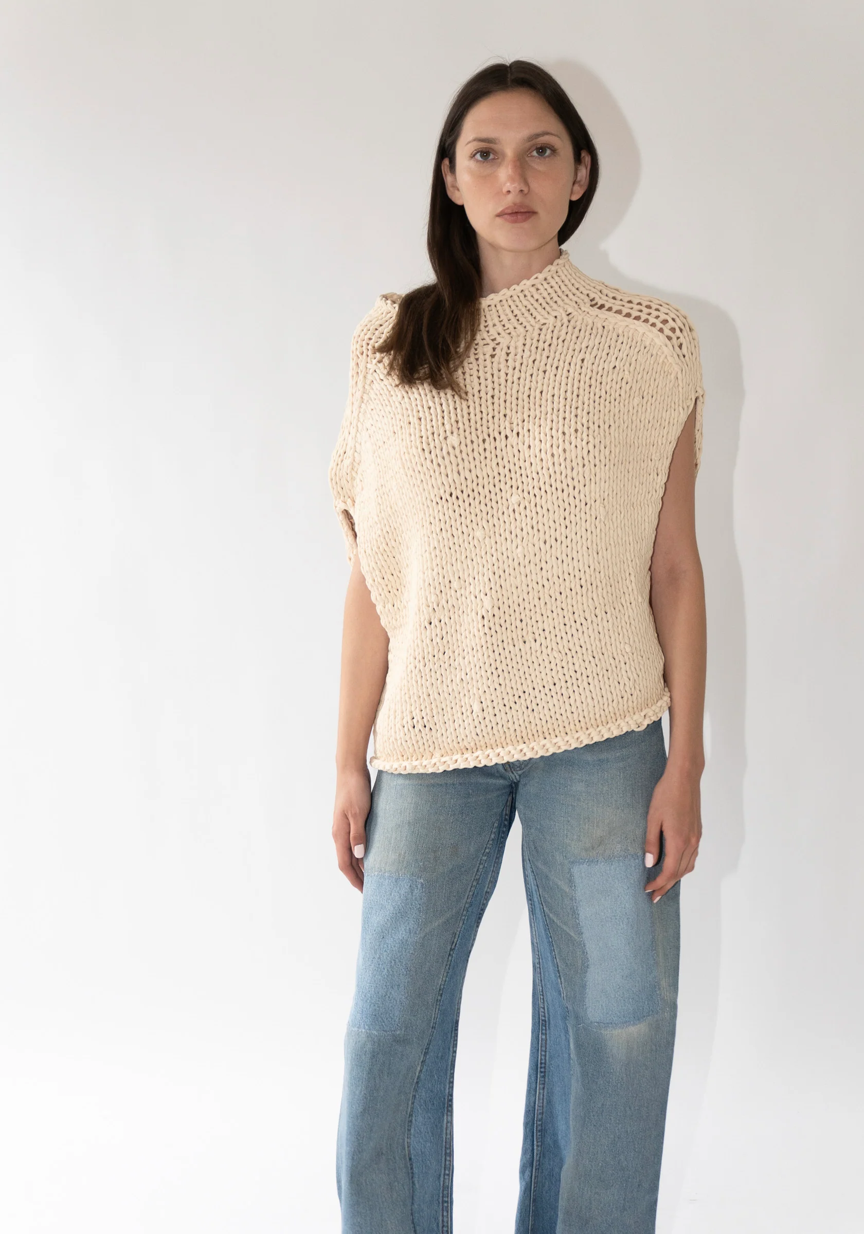 Handknit Jersey Shell in Washed Ivory