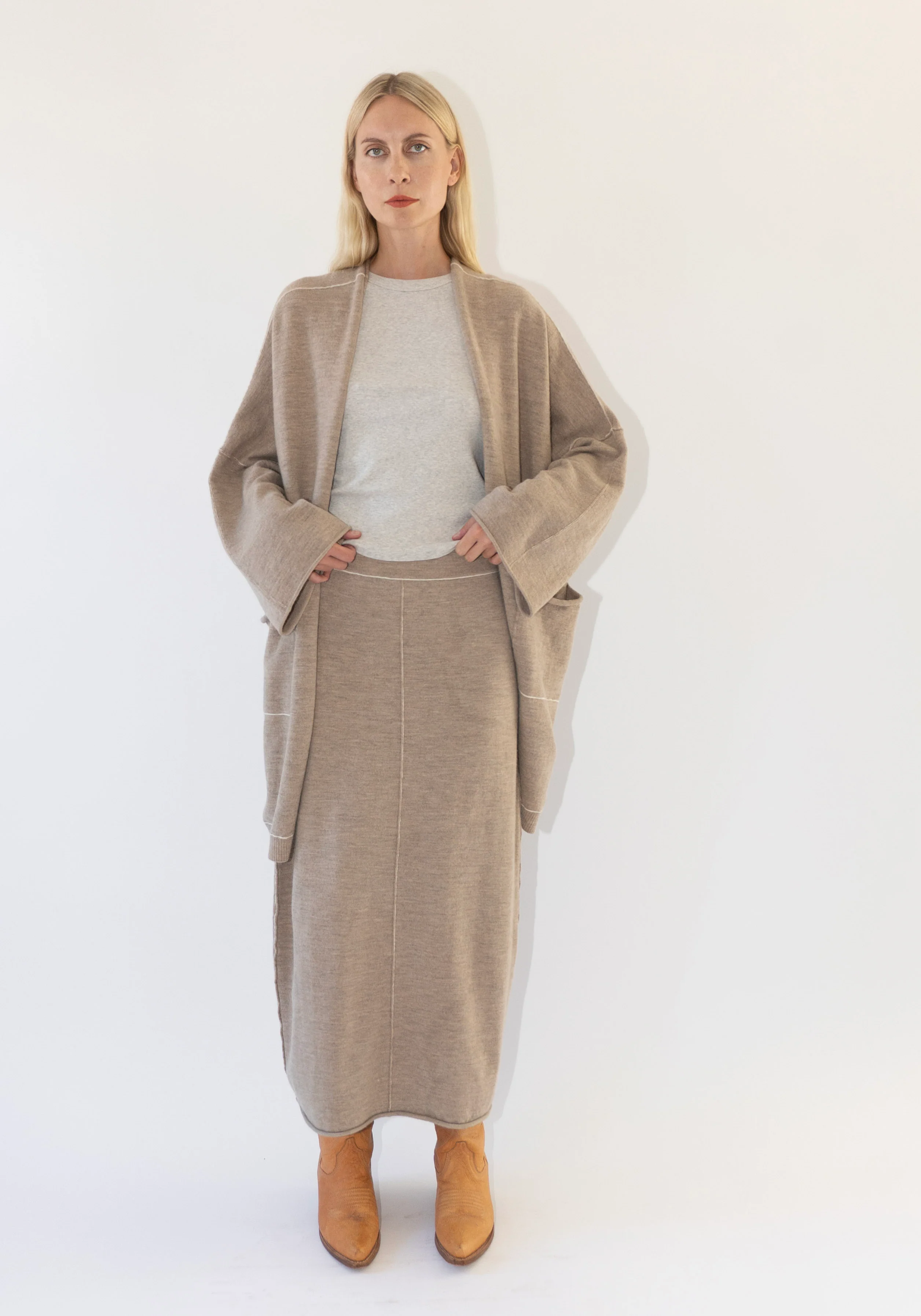 5Stitch Skirt in Oak from Lauren Manoogian. Soft structured skirt with elastic waistband, supple strech and contrasting seam lines.