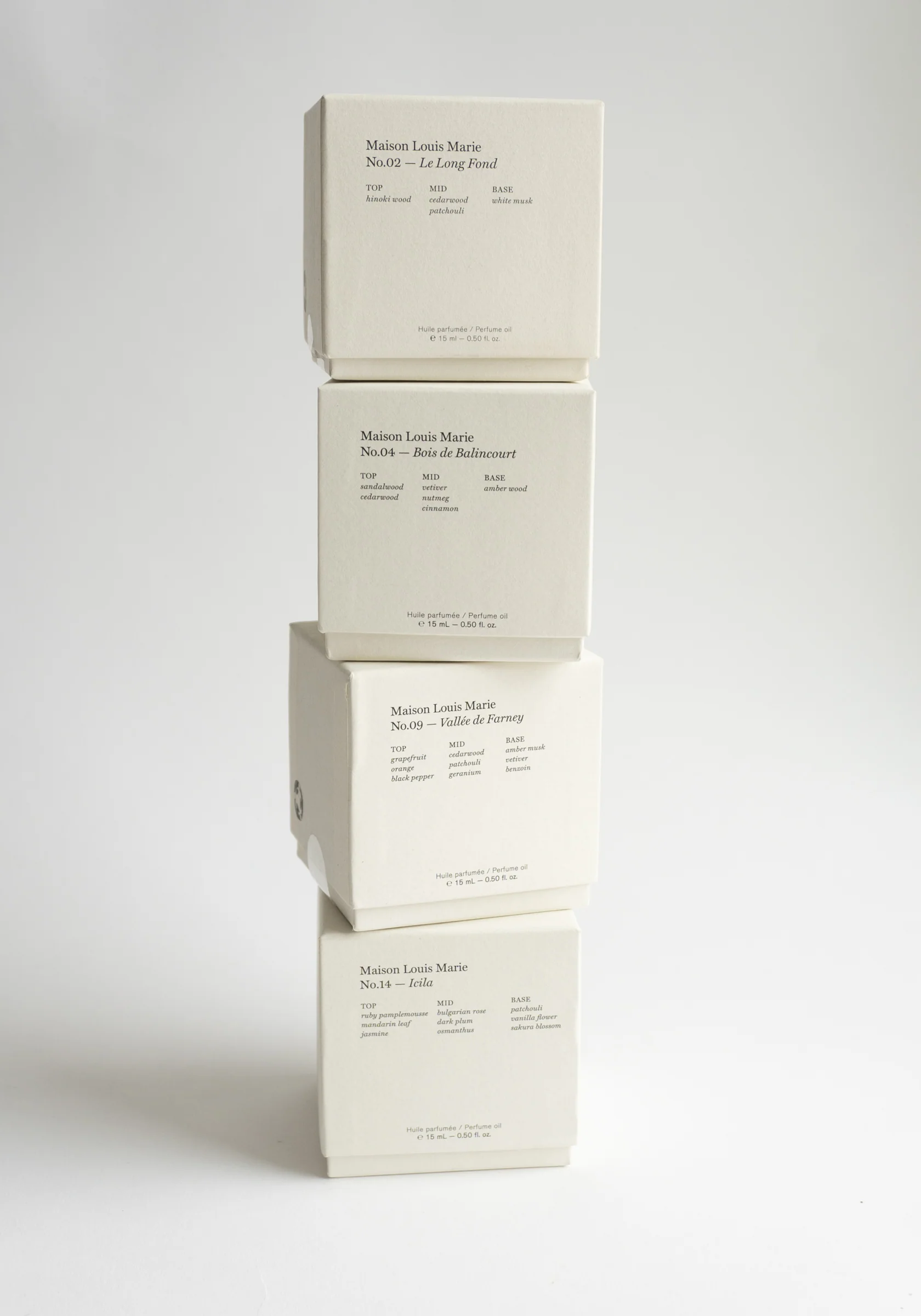No.2Â Le Long Fond: Hinoki wood with cedar wood, patchouli and white musk.