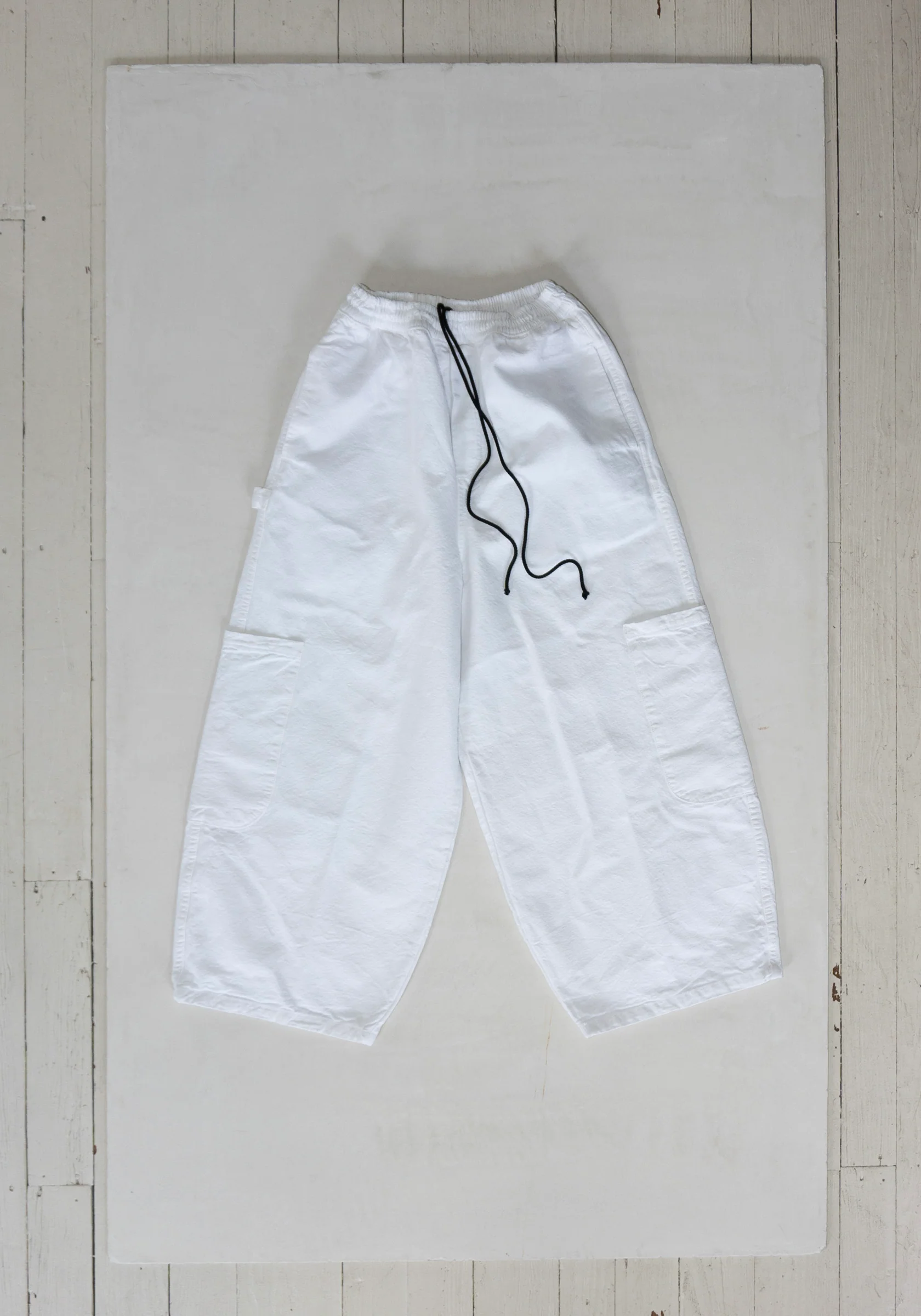 Chef Pant in Painter White, made exclusively for Vestige by Meals. This bright white cropped pant has 5 big pockets, an elastic waist and drawstring. Made in soft-washed cotton canvas in Los Angeles. Â