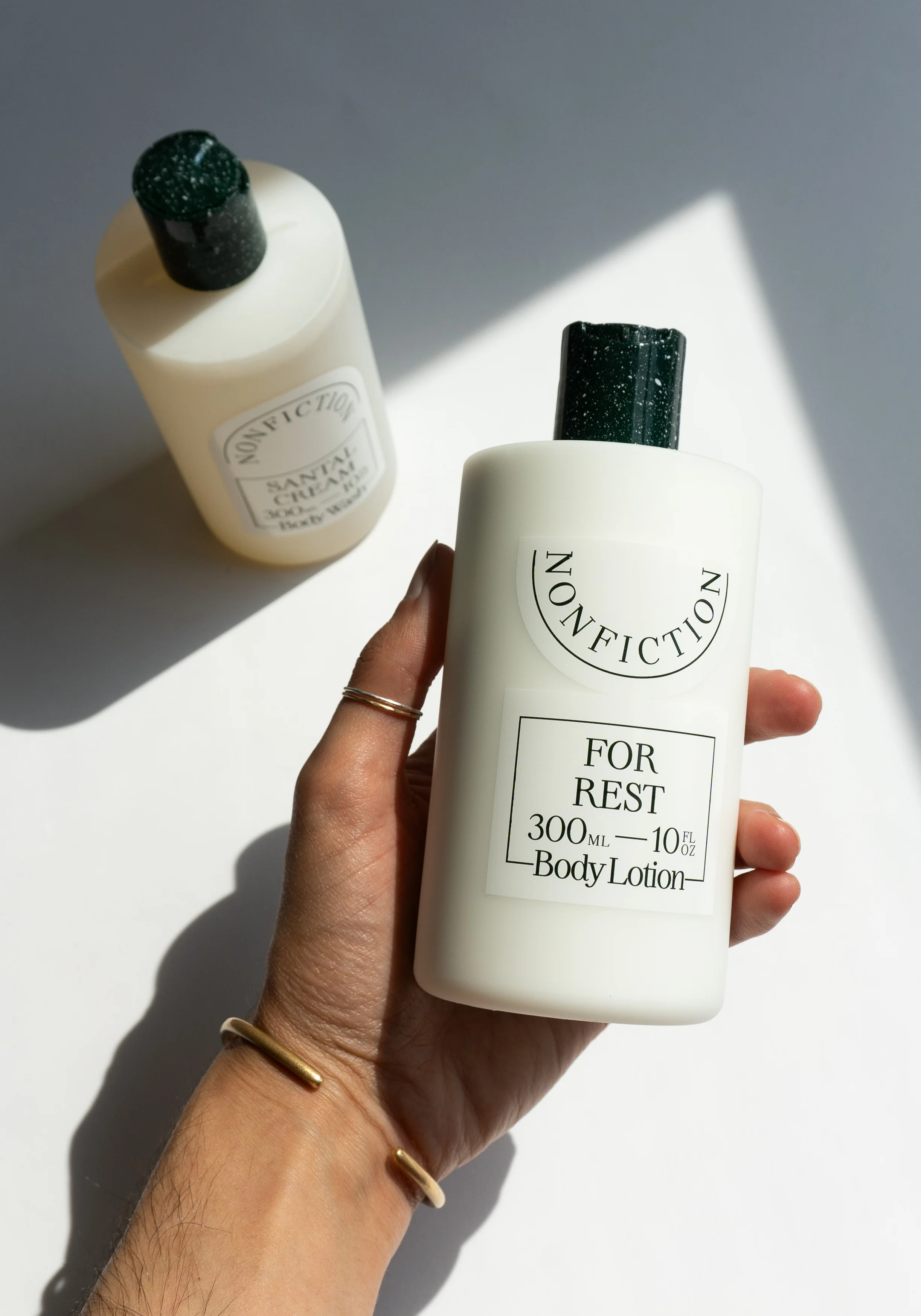 For Rest Body Lotion from NONFICTION. Nonfiction's signature fragrances captured in nutrient-rich body lotion. With a perfect balance between oil and moisture, the formula is instantly absorbed into skin, leaving only silky textures. Enjoy the comfortable and soothing fragrance lingering on your skin as if you have sprayed a perfume. A blend of highly moisturizing sweet almond seed oil, avocado oil, and sesame seed oil protects and moisturizes skin, while vitamin E and fatty acid keep skin tight and glowing. Includes notes of Hinoki, Frankincense, Turkish Rose, Yuzu, and Nutmeg.