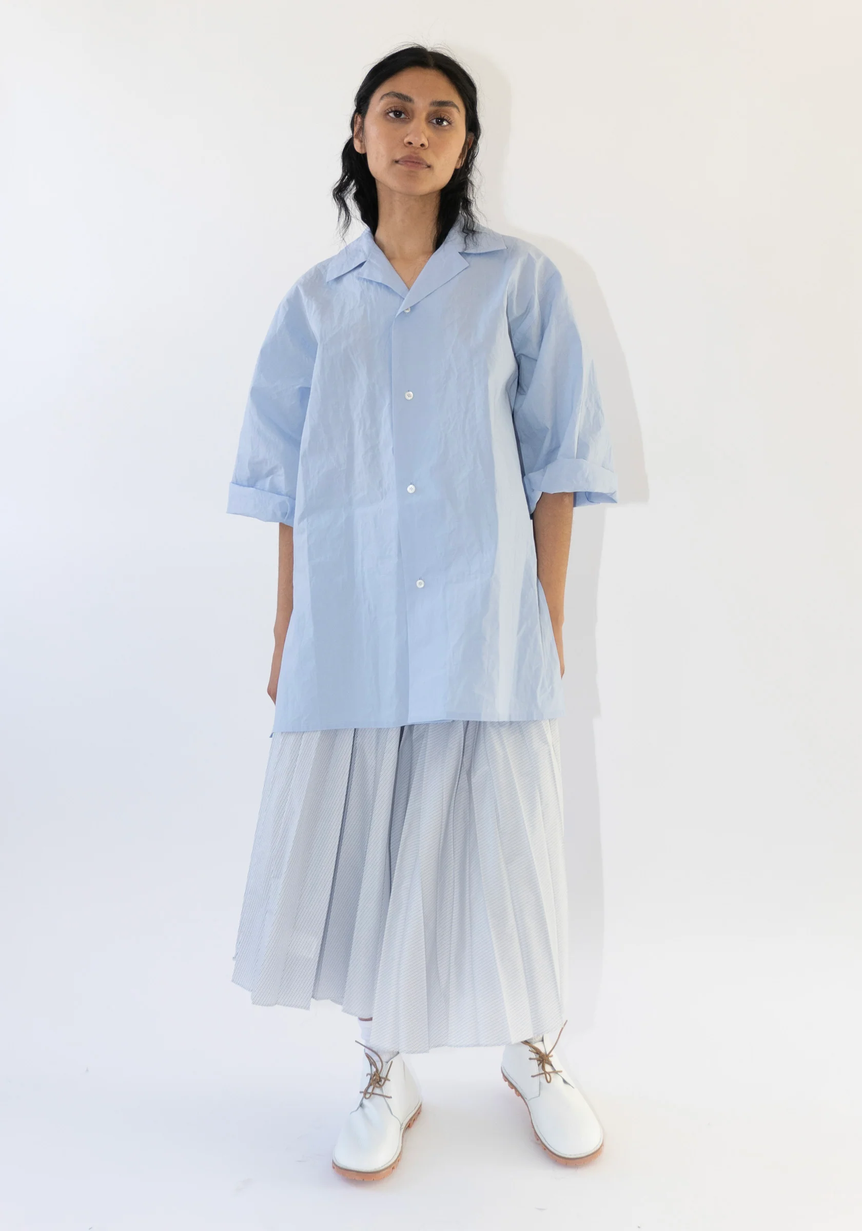 Safi Pleated Skirt in Pota Sapphire from Sofie D'Hoore. A voluminous a-line pull-up skirt, featuring pleating throughout, drawstring and side pockets.Â